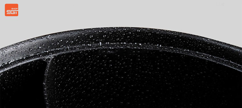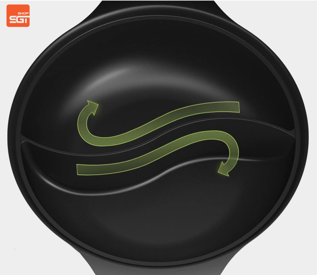 Vách ngăn hình chữ S được đúc nguyên khối, đem lại sự liền mạch, ngăn chặn mùi và nước lẩu tràn hoặc rò rỉ sang bên kia, giữ trọn vẹn hương vị của từng loại lẩu. Đồng thời, với thiết kế này, nhiệt độ được lan tỏa đều một cách nhanh chóng, đảm bảo cả gia đình có thể tận hưởng bữa ăn ngon miệng.